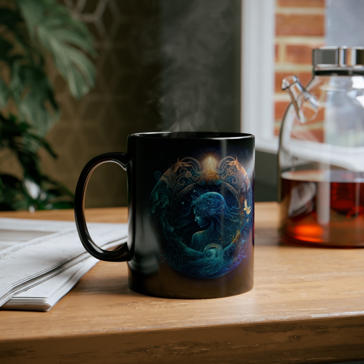 Indulge in the exquisite design of our Aquarius Goat mug, meticulously crafted to blend style with functionality. Featuring a sleek black finish and delicate Aquarius and goat motifs, each sip becomes a moment of refined luxury. Experience the union of artistry and utility in every cup.