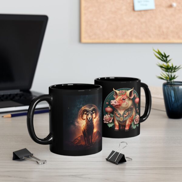 If you were born under the bold Aries sun sign and the Year of the Pig, you carry a rare combination of ambition, warmth, and generosity. Aries infuses you with courage and passion, while the Pig adds a touch of luck, charm, and resilience. This Black Aries Pig Mug is designed to reflect your fiery yet kind-hearted nature, making it the perfect addition to your daily routine. Whether you’re fueling your morning with a strong coffee or winding down with a calming tea, this astrology-themed ceramic mug is a reminder of your unstoppable drive and good fortune.