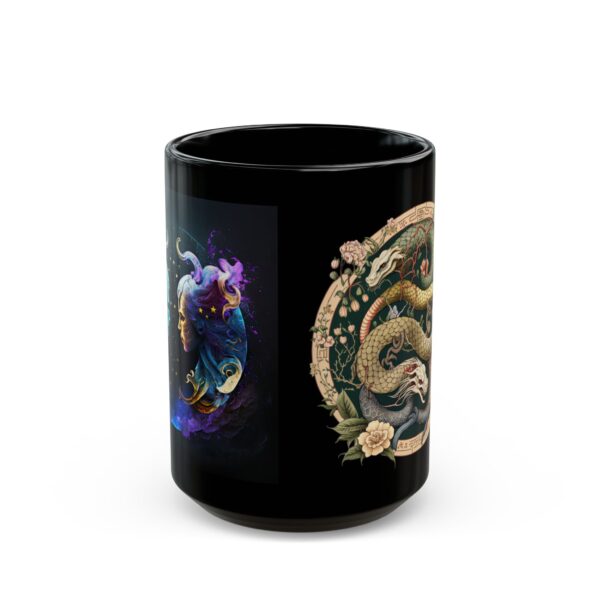 Made from high-quality ceramic, the Black Gemini Snake Mug is as durable as it is elegant. Its fade-resistant design ensures the zodiac motifs stay vibrant even after repeated use. With an ergonomic handle and a generous capacity, it offers both comfort and functionality for your favorite beverages. Whether at home or in the office, this mug is the perfect companion for your daily routine.