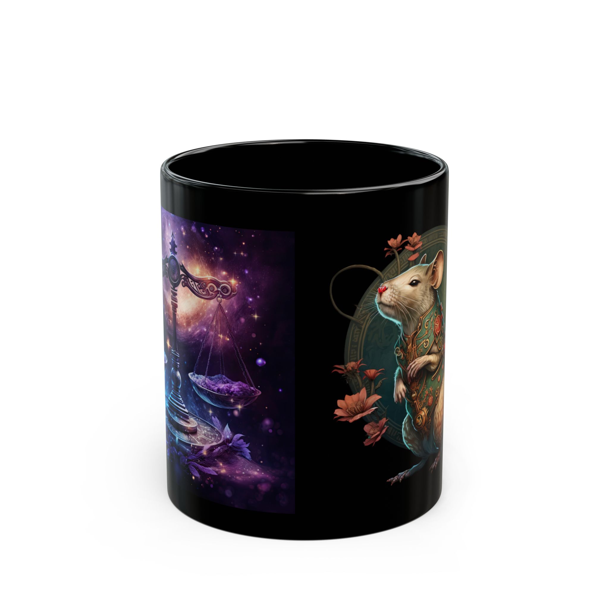 Celebrate intelligence and balance with this black Libra Rat mug. A stylish astrology gift for Librans born in the Year of the Rat. Premium ceramic, microwave-safe, and elegant!